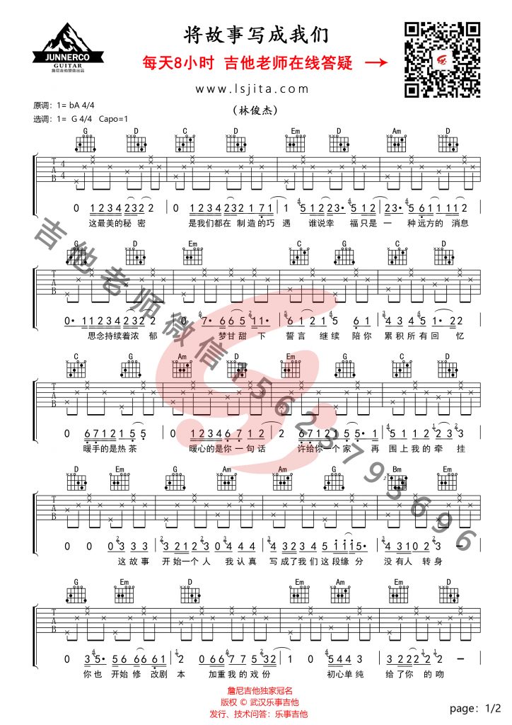 吉他林俊杰《将故事写成我们》吉他谱 G调弹唱谱