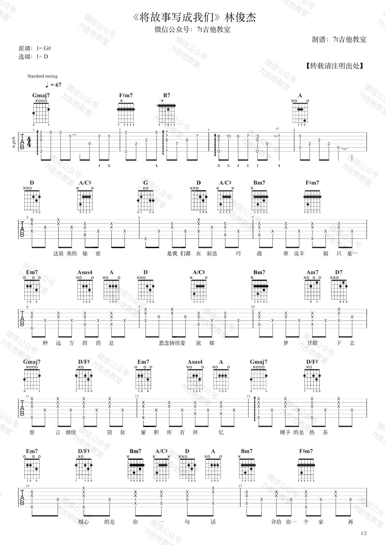 吉他林俊杰《将故事写成我们》吉他谱 D调版
