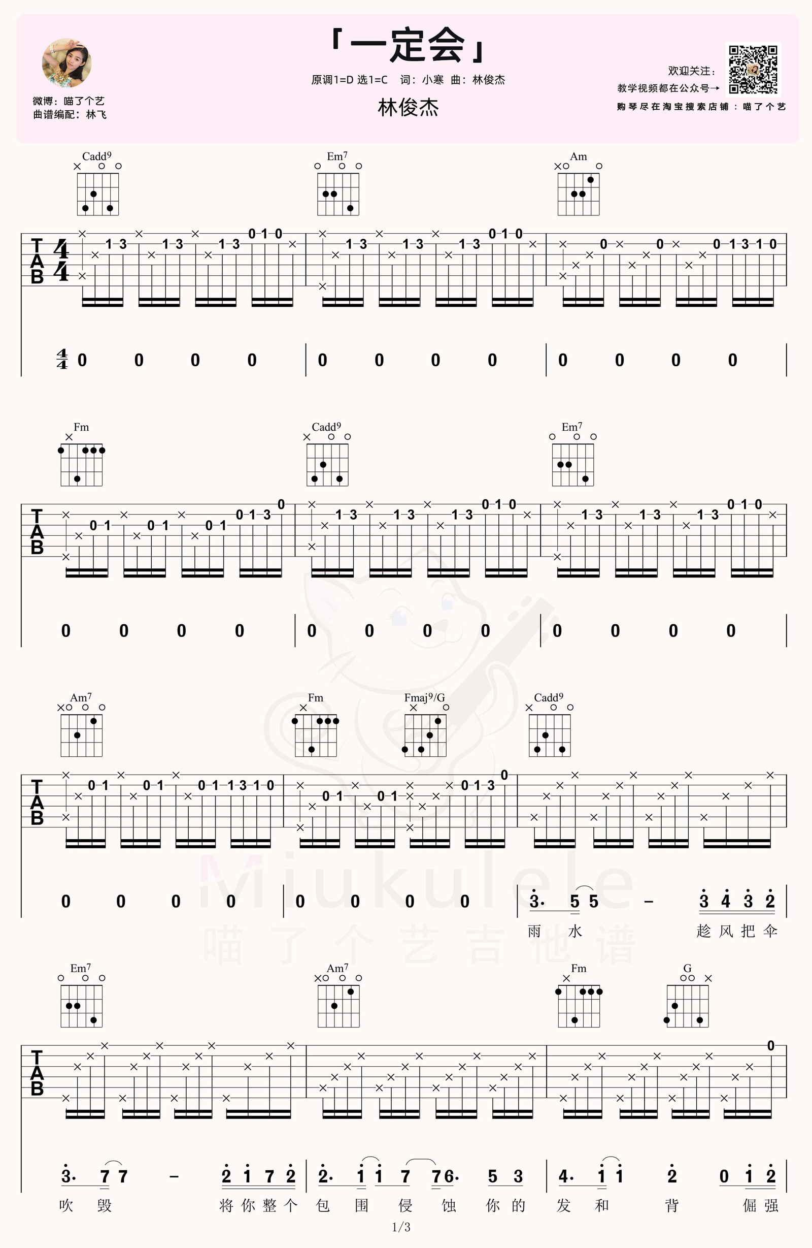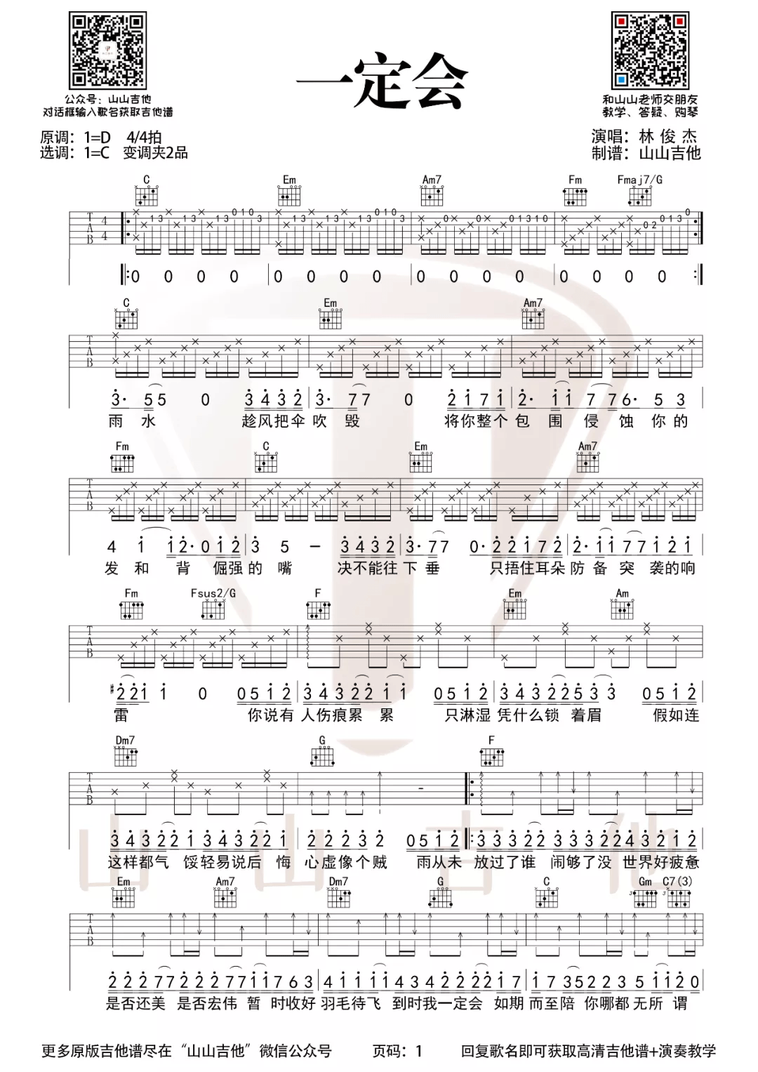 一定会吉他谱_林俊杰_《一定会》C调原版_弹唱六线谱...
