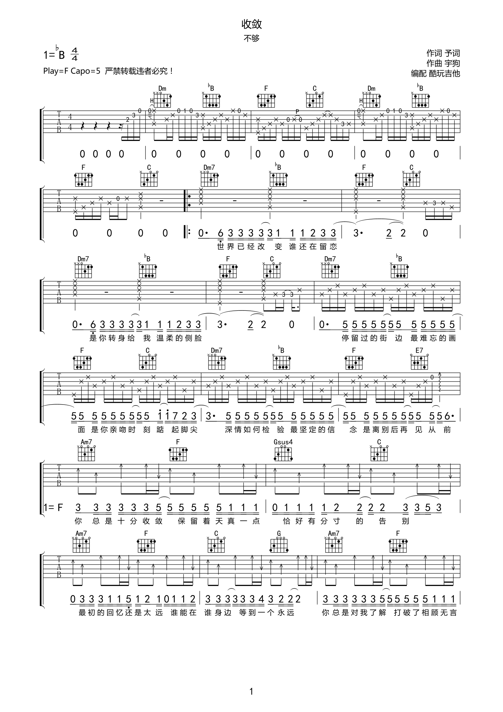 不够《收敛》吉他谱-F调弹唱谱高清原版前奏间奏尾奏完整版收敛是由予词作词,宇狗作曲,不够演唱的一首歌曲,发行于2020年3月31日。...