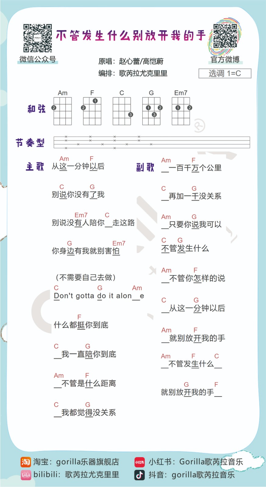 尤克里里赵心蕾/高恺蔚《不管发生什么别放开我的手》尤克里里谱-C调弹唱谱