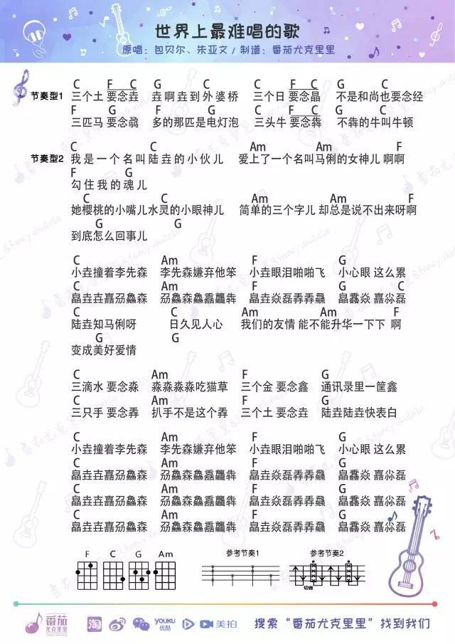 《世界上最难唱的歌》尤克里里谱-C调和弦弹唱谱...