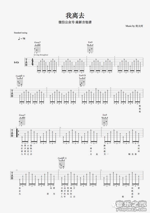 吉他何大河《我离去》吉他谱_吉他弹唱谱_最新吉他谱编配