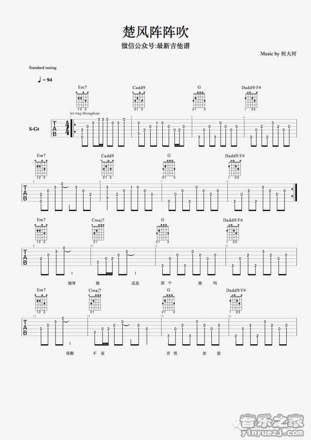 吉他何大河《楚风阵阵吹》吉他谱_吉他弹唱谱_最新吉他谱编配