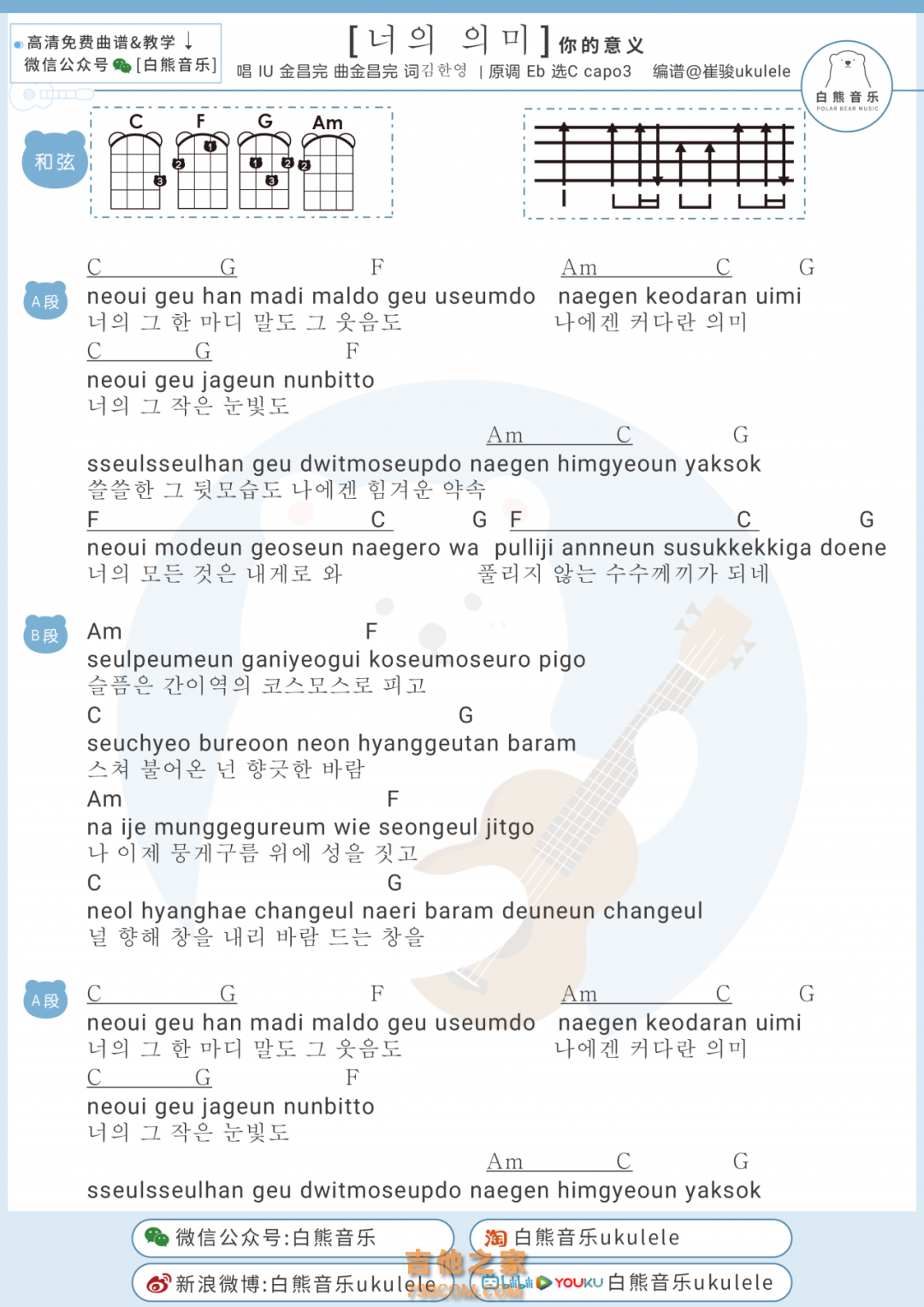 IU&金昌万《你的意义》尤克里里谱-C调和弦弹唱谱...