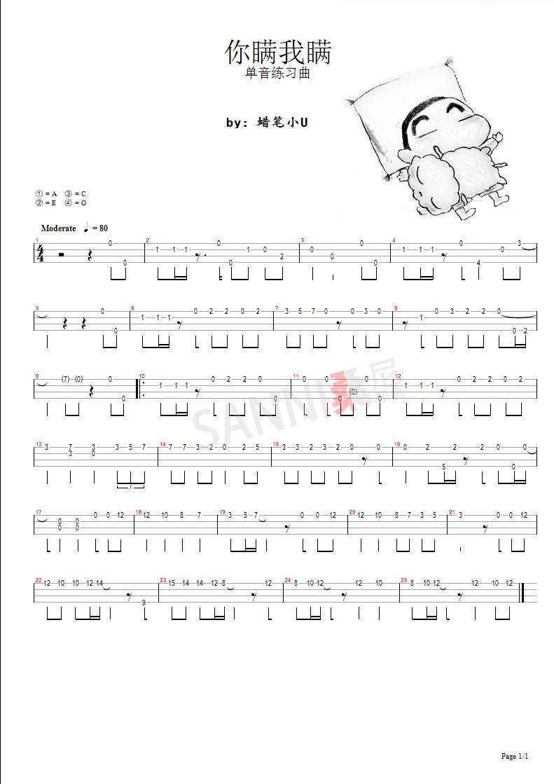 陈柏宇《你瞒我瞒》尤克里里谱指弹版G调...