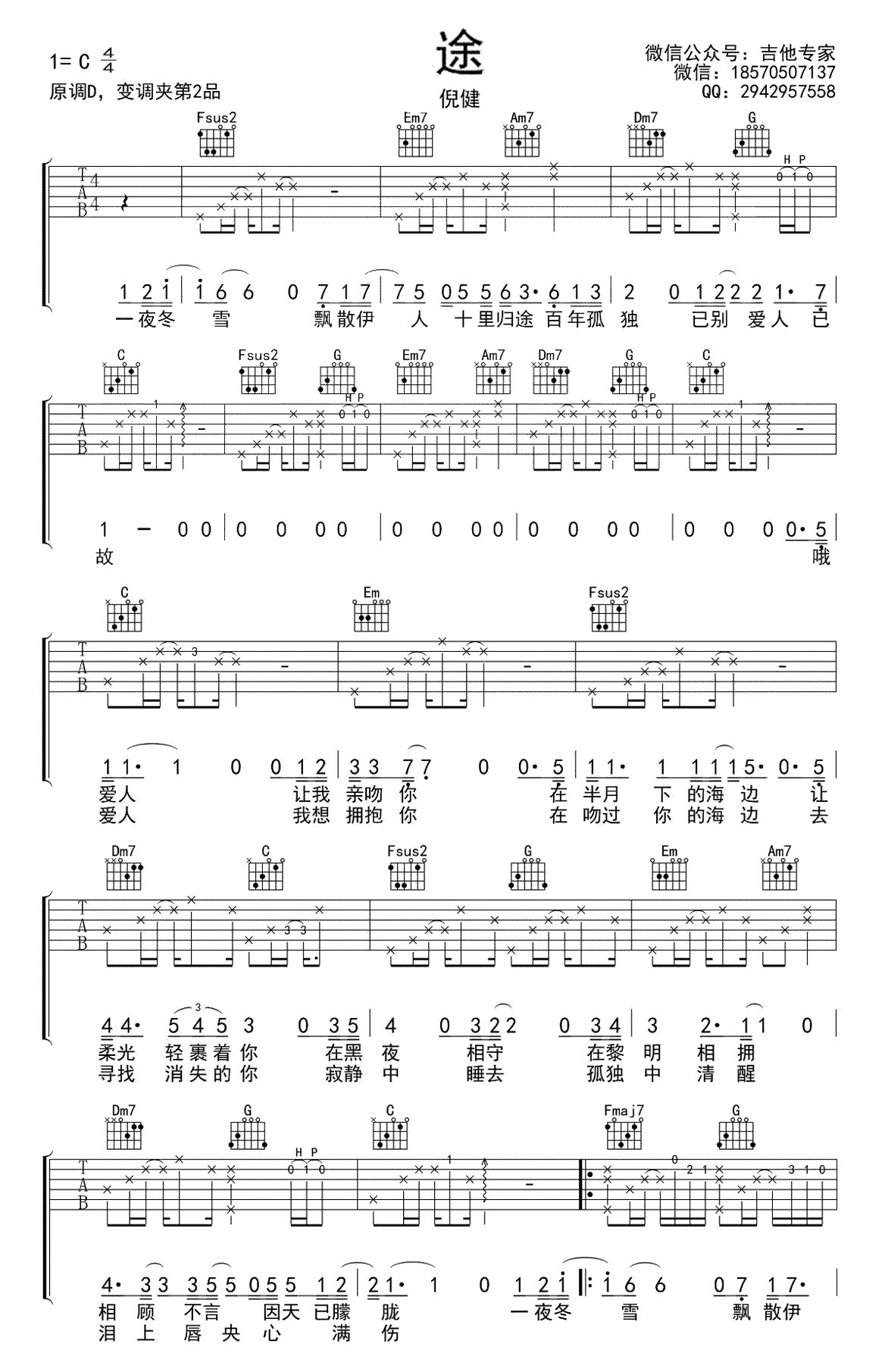 吉他倪健《途》吉他谱_吉他弹唱谱_吉他专家编配