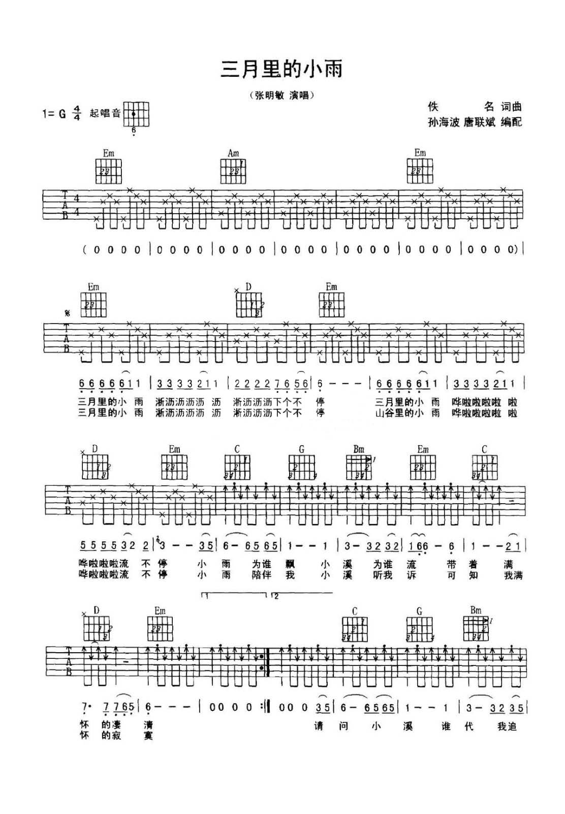吉他刘文正《三月里的小雨》吉他谱_吉他弹唱谱