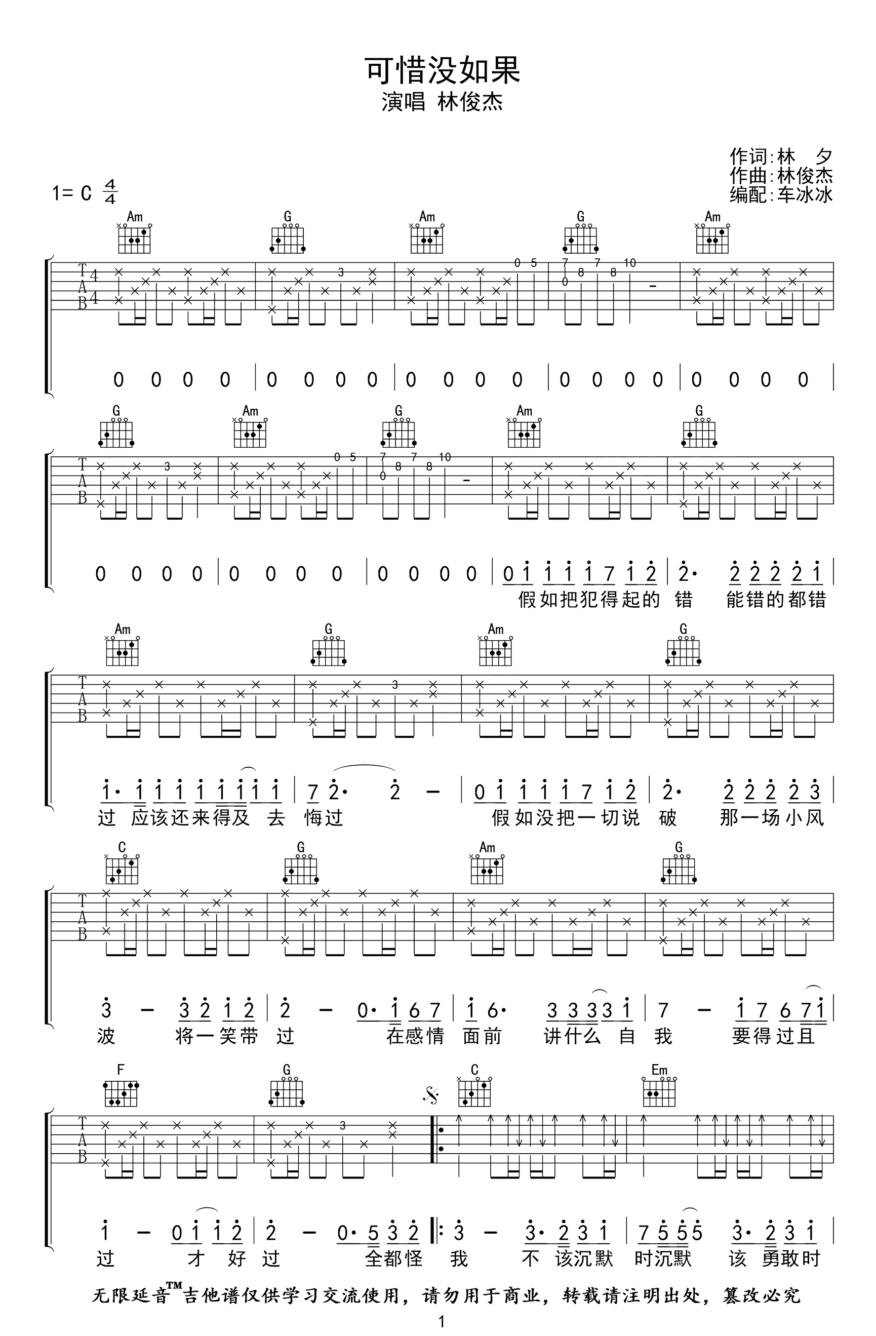 可惜没如果吉他谱_C调_林俊杰_弹唱谱_高清六线谱《可惜没如果》吉他弹唱谱,选用C调和弦指法,三张图片六线谱。...