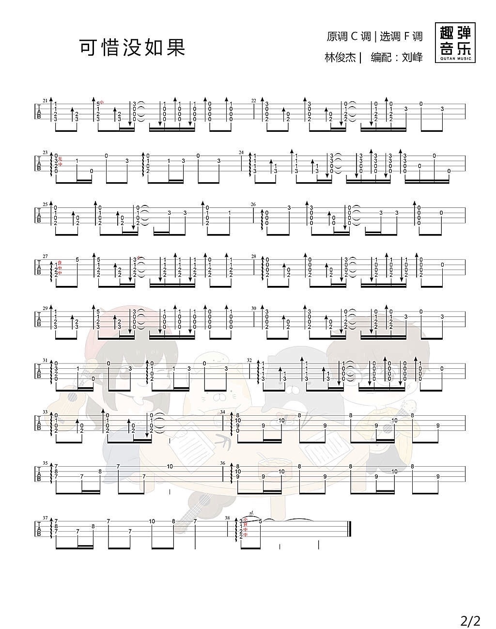 林俊杰《可惜没如果》吉他谱,共有2张高清图谱,免翻页排版设计。...
