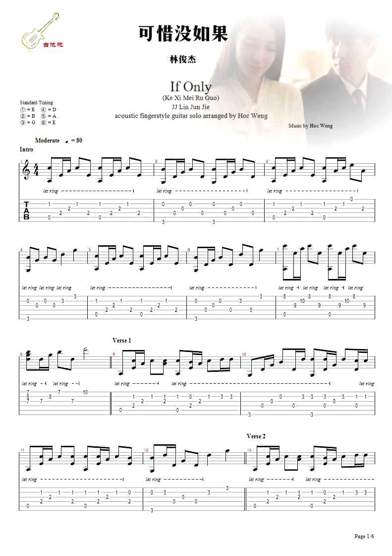 林俊杰《可惜没如果》吉他谱,共有6张高清图谱。...