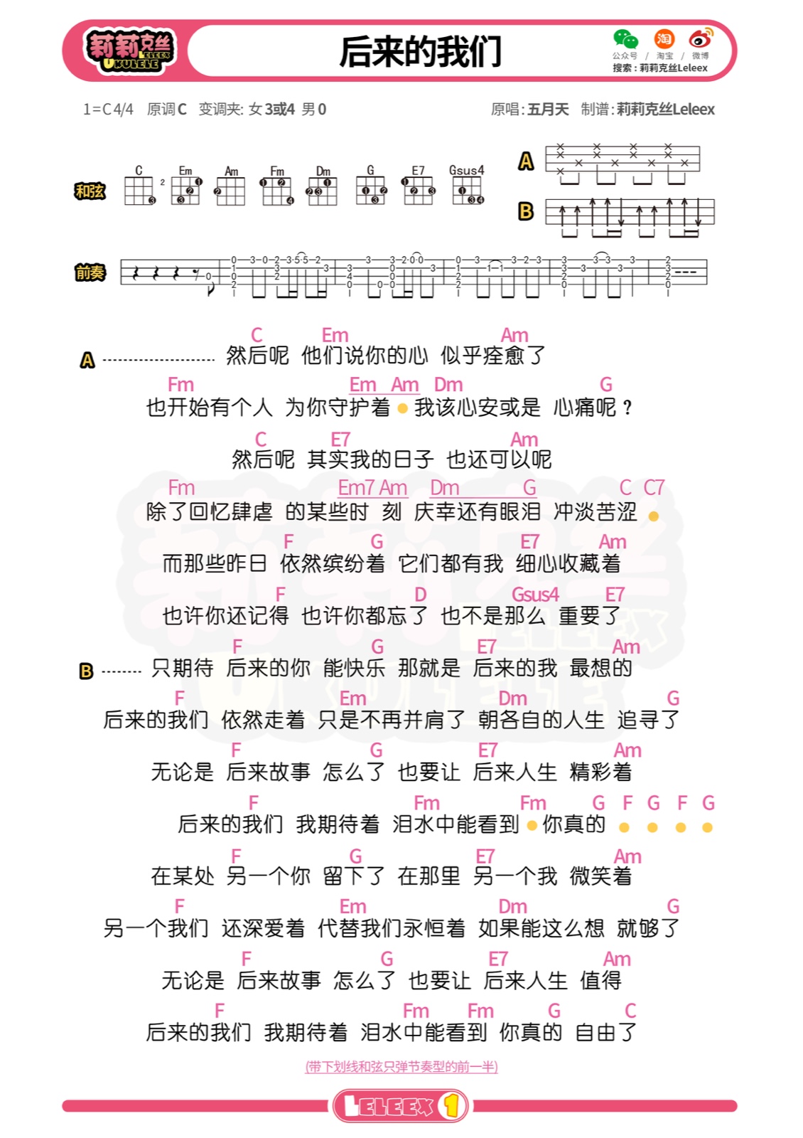 五月天《后来的我们》尤克里里曲谱...
