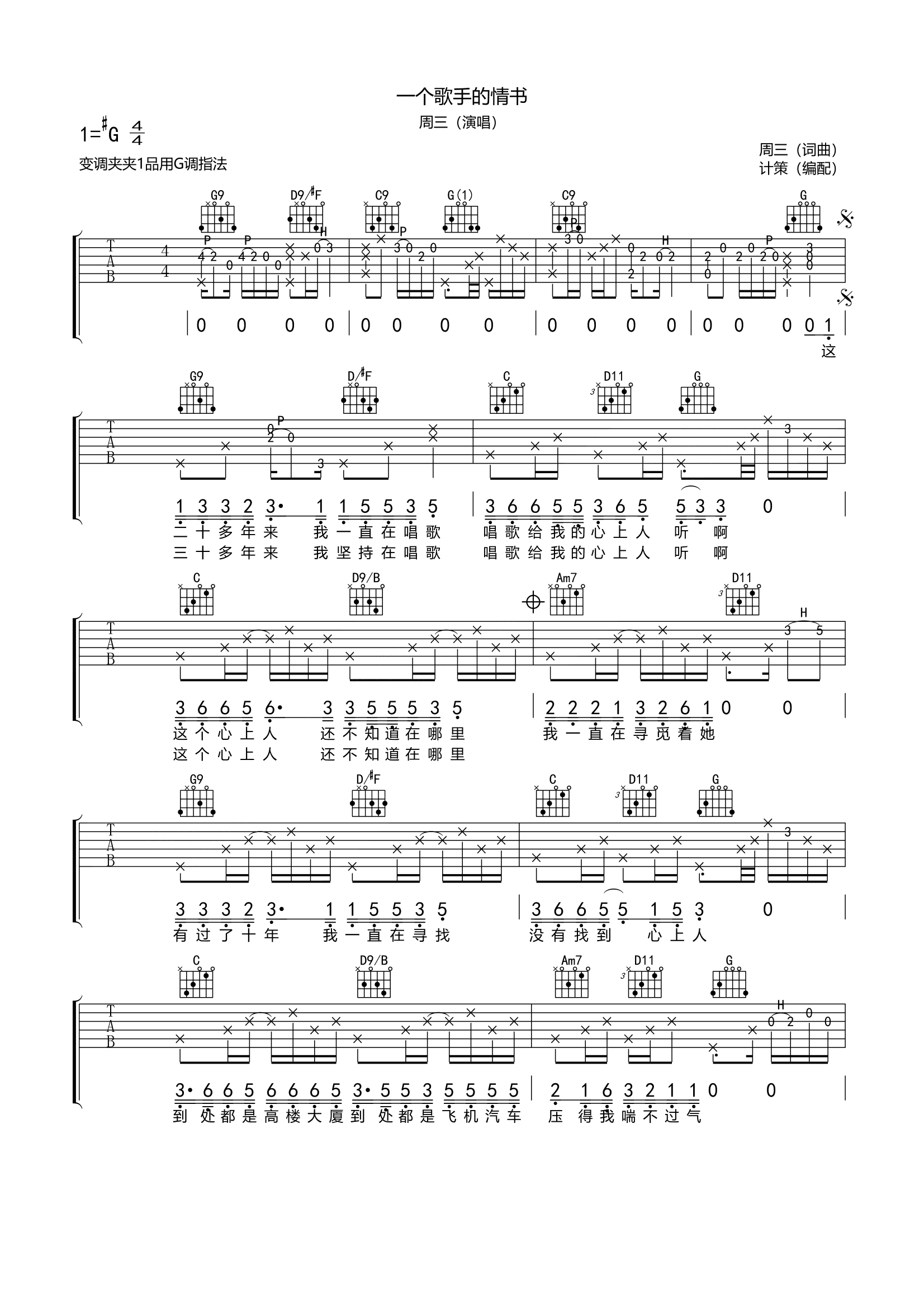 周三《周三的情书》吉他谱,共有4张高清图谱。...