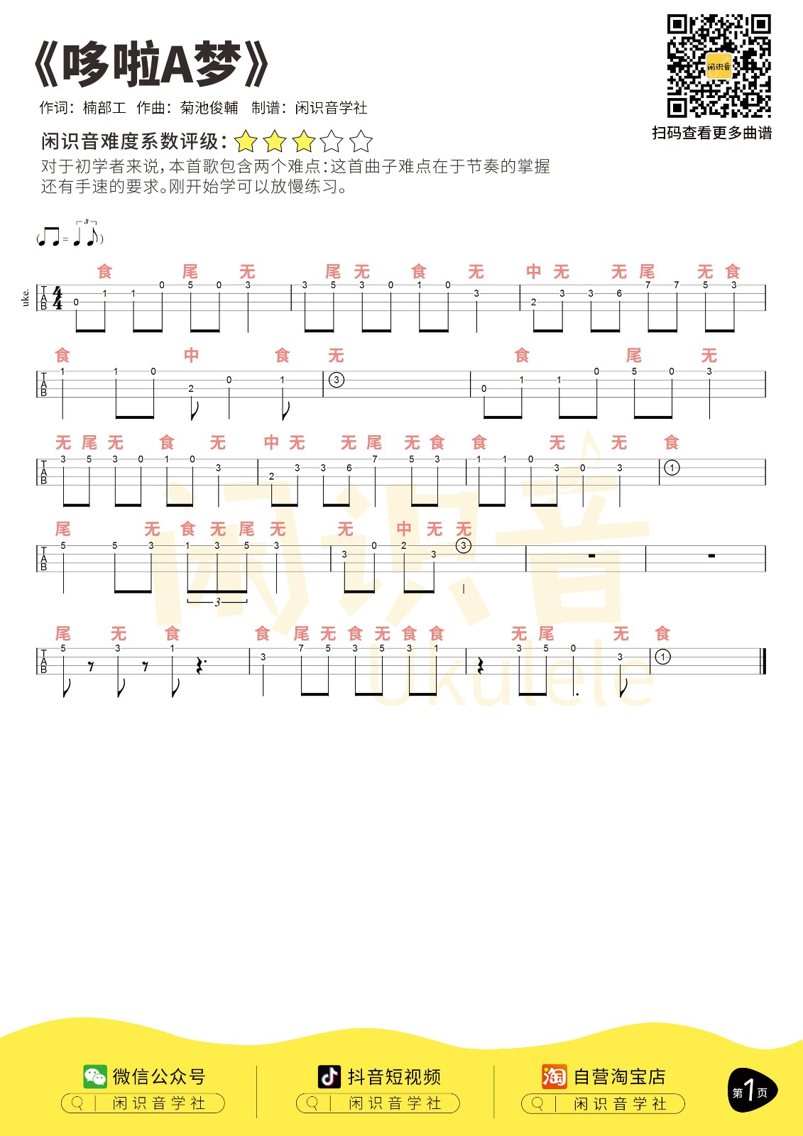 菊池俊辅《哆啦A梦》尤克里里-C调指弹弹唱谱...