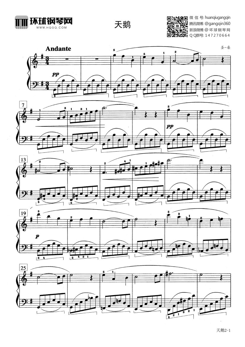 《天鹅》钢琴谱-四手联弹-圣桑...
