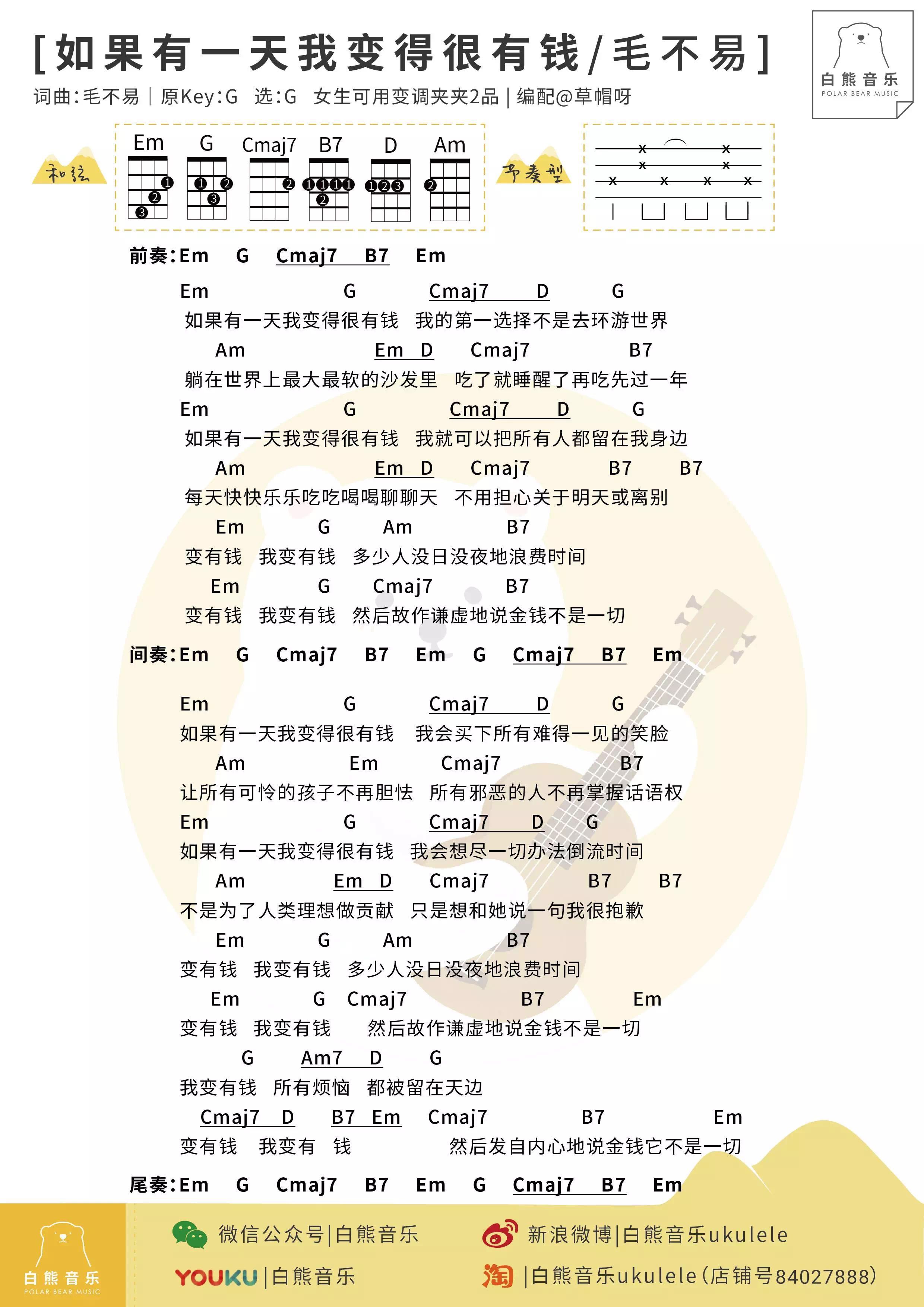 《如果有一天我变得很有钱》毛不易尤克里里曲谱...