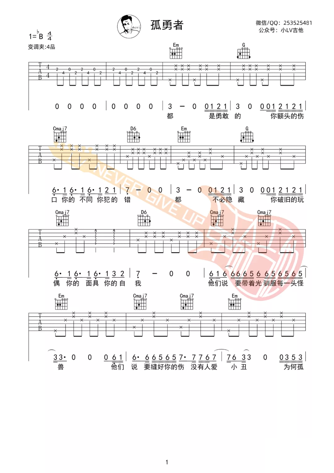 孤勇者吉他谱_陈奕迅_《孤勇者》G调弹唱谱_高清六线谱...