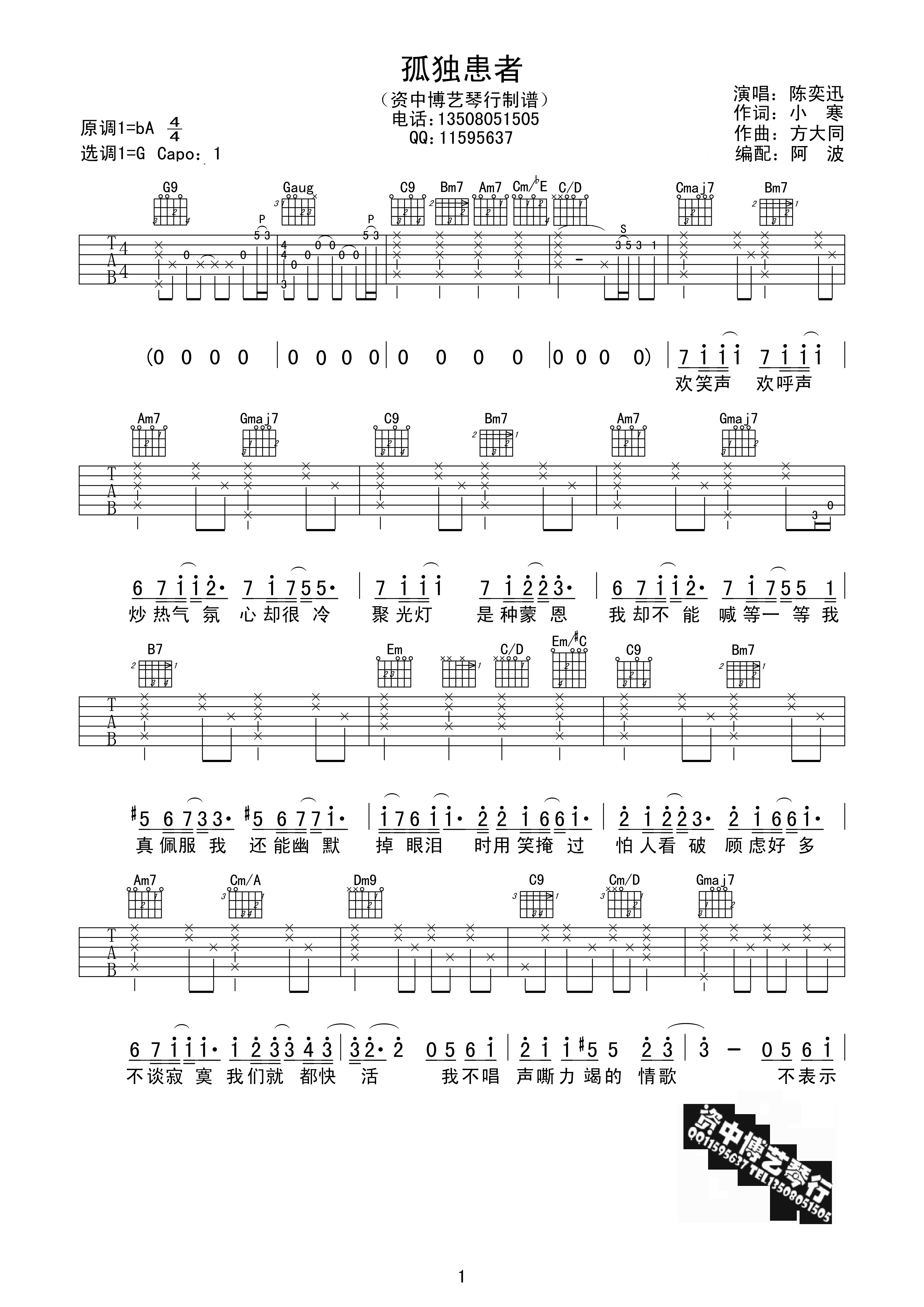 陈奕迅《孤独患者》吉他谱-G调弹唱谱六线谱...