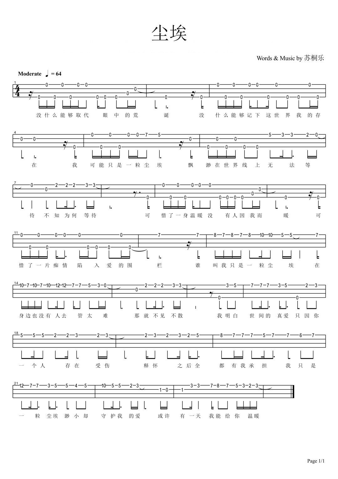 尤克里里家家《尘埃》尤克里里谱 G调指弹版