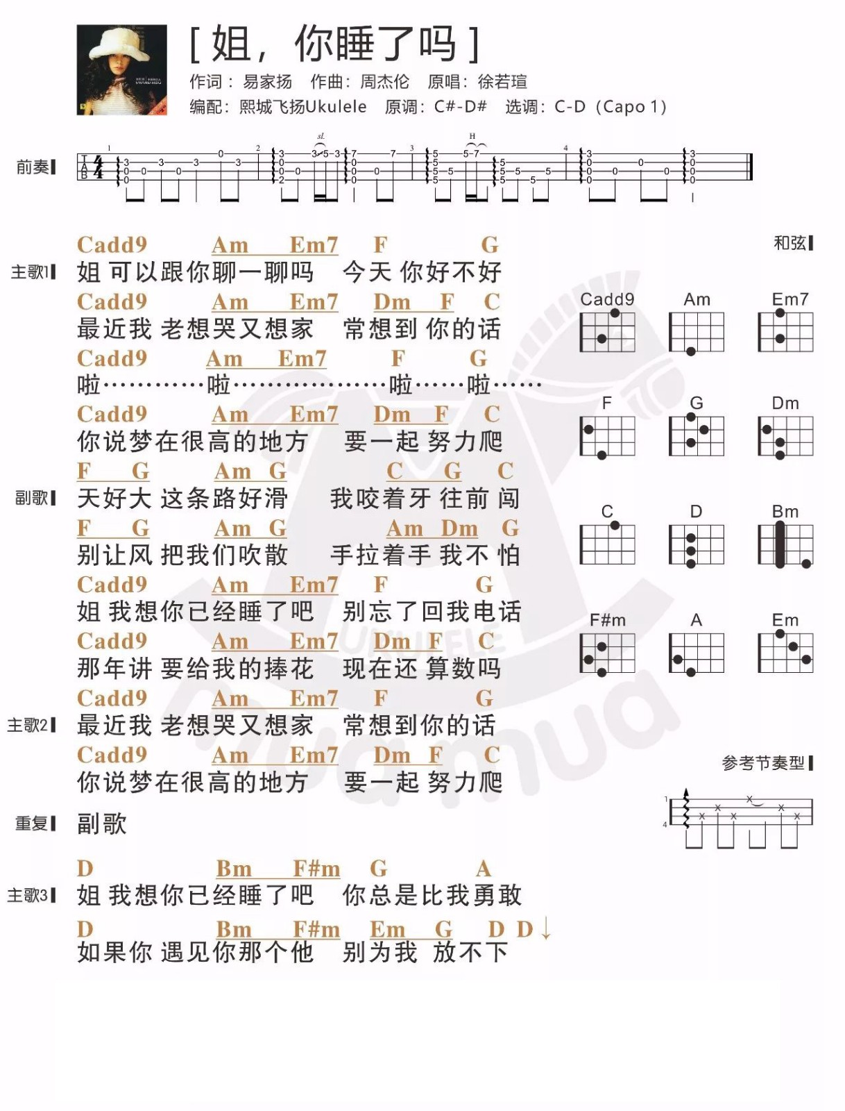 尤克里里徐若瑄《姐,你睡了吗》尤克里里谱
