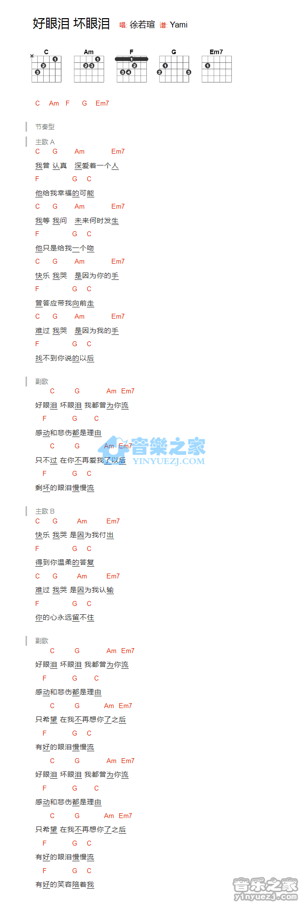 徐若u《好眼泪坏眼泪》吉他和弦弹唱谱...