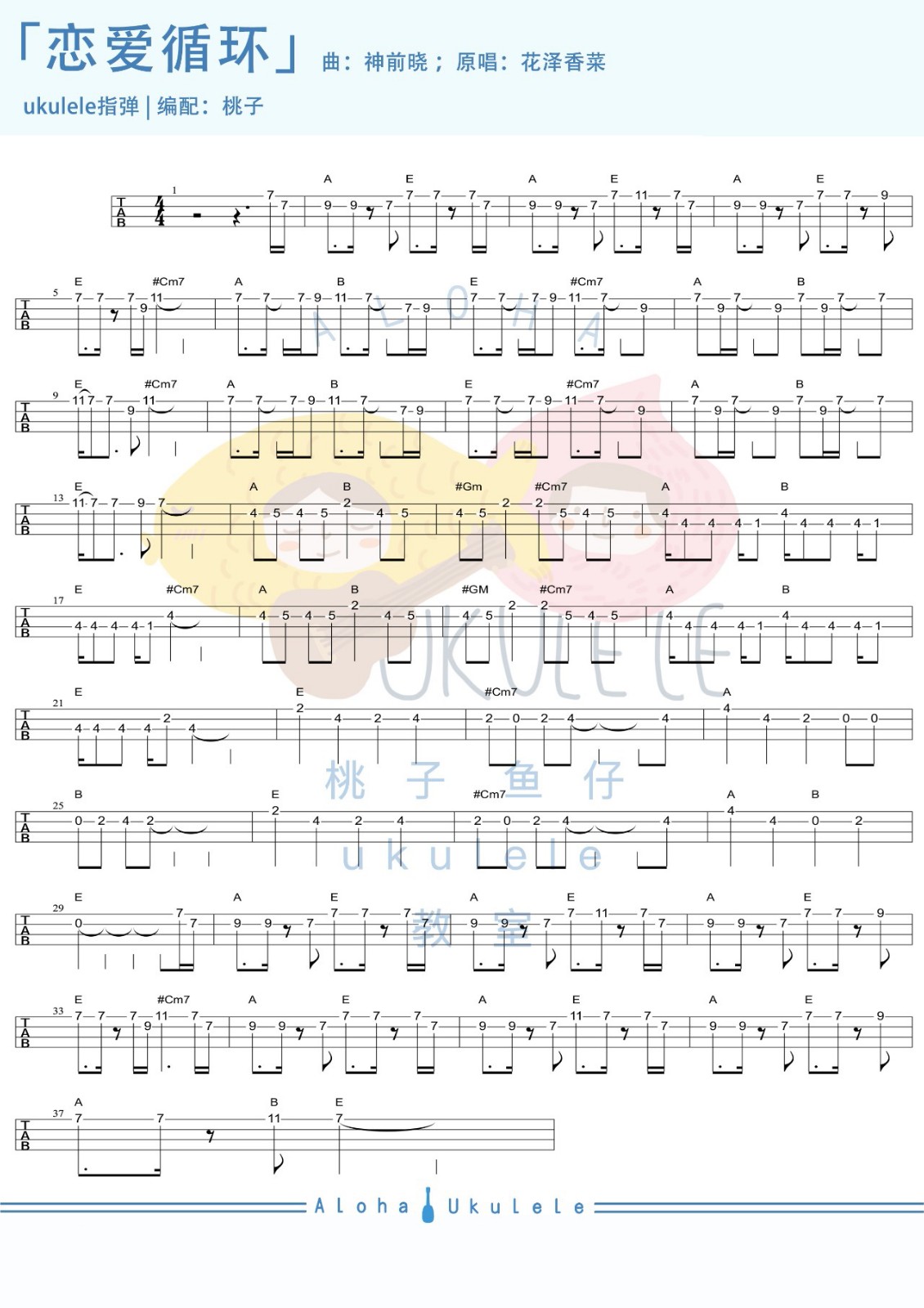 尤克里里花泽香菜《恋爱循环》尤克里里谱-A调指弹版