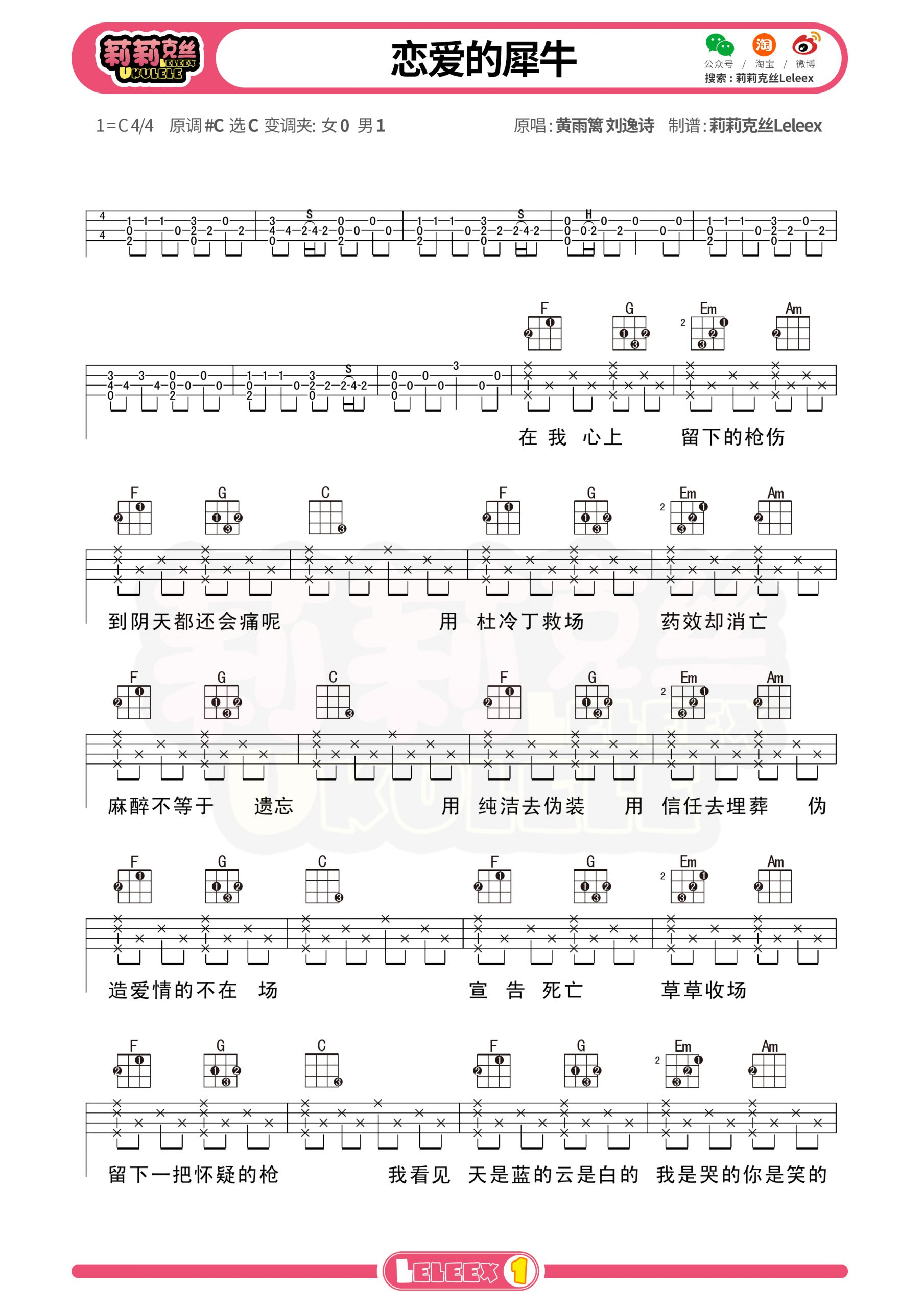 黄雨篱《恋爱的犀牛》尤克里里曲谱-C调弹唱谱...