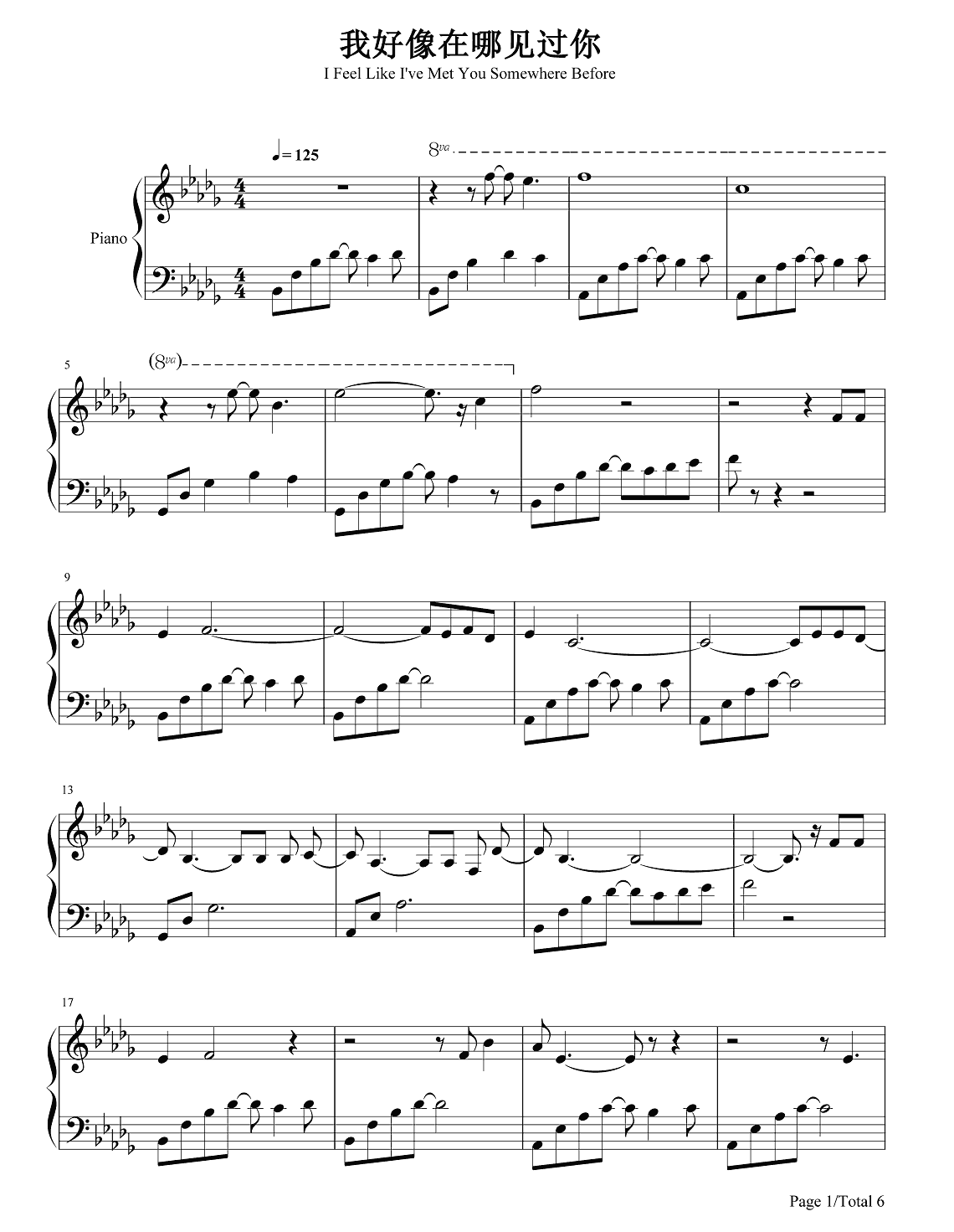 钢琴薛之谦《我好像在哪见过你》钢琴谱