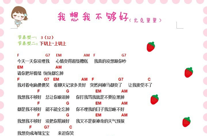 单色凌《我想我不够好》吉他谱G调&C调版...