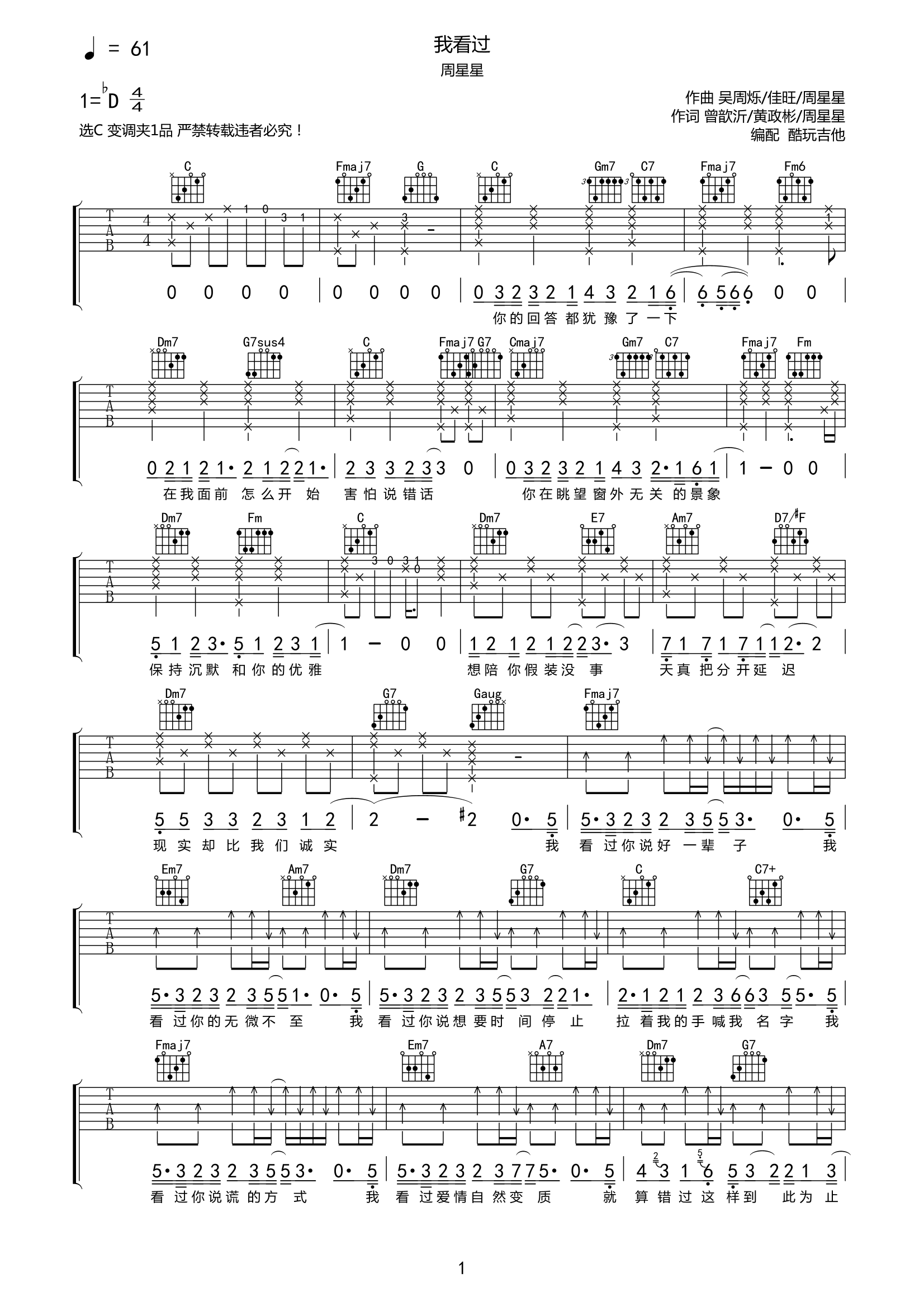 吉他周星星《我看过》吉他谱-C调弹唱谱高清原版