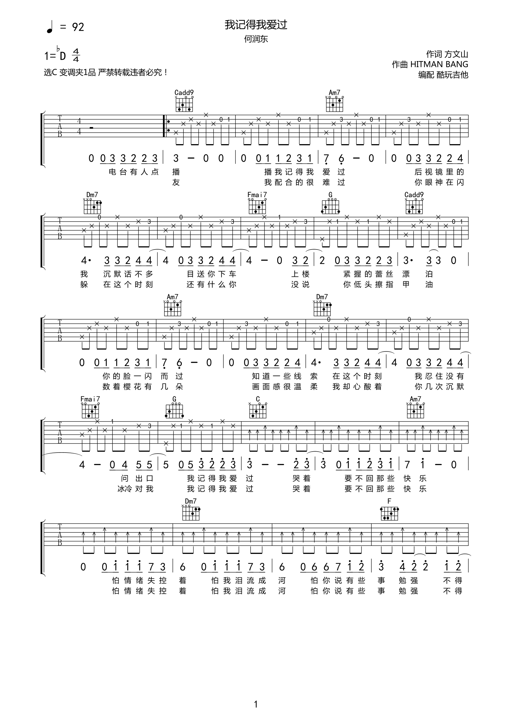 关于我记得我爱过的曲谱