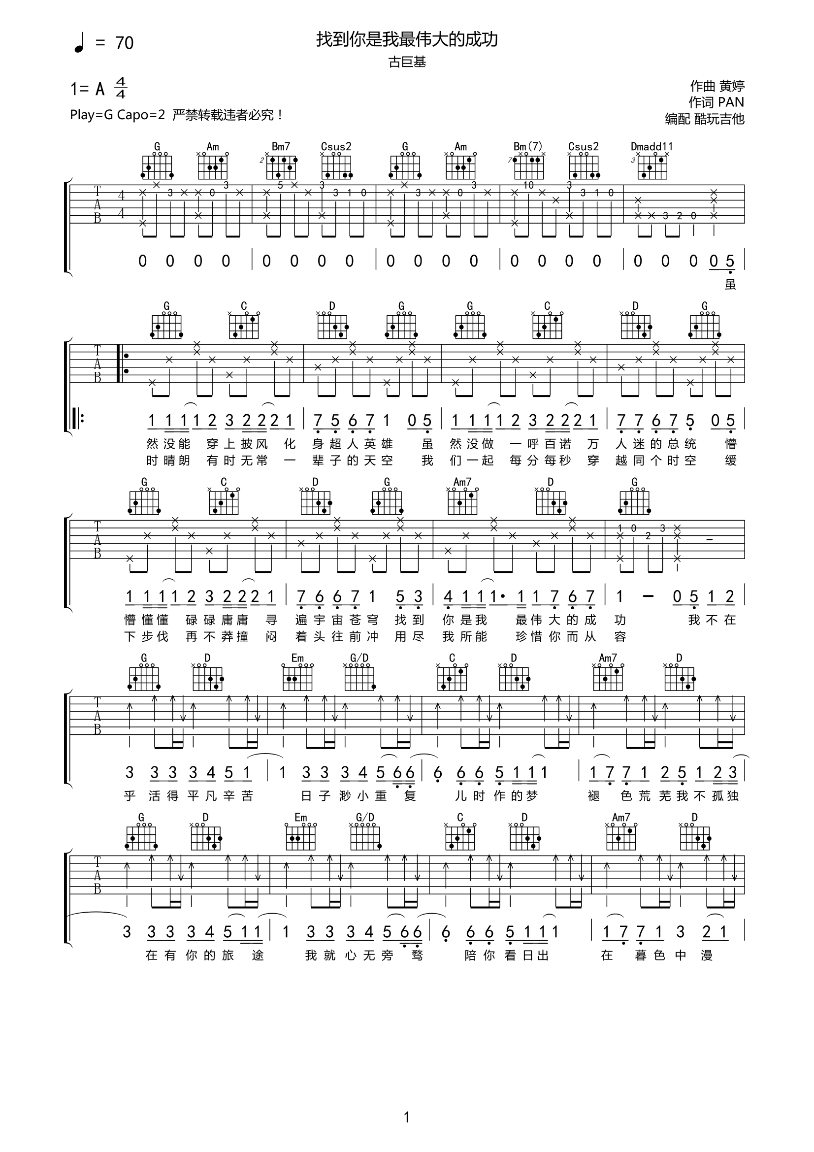 吉他古巨基《找到你是我最伟大的成功》吉他谱-G调弹唱谱高清原版谱