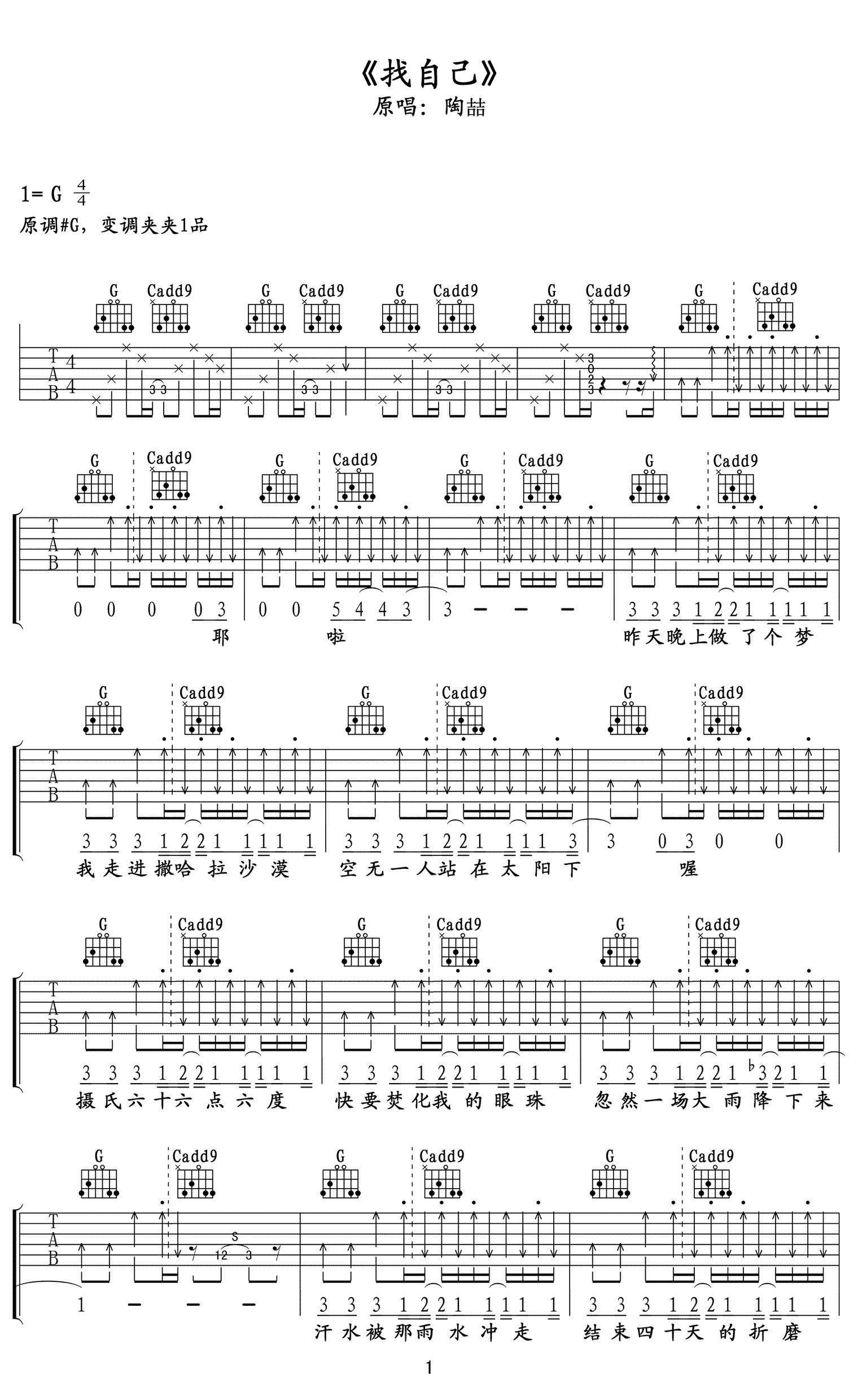 《找自己》吉他谱_陶喆_G调原版弹唱六线谱...