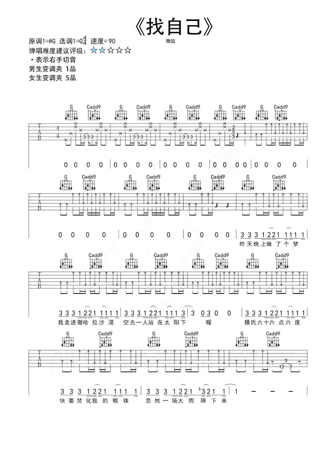 吉他陶喆《找自己》吉他谱_吉他弹唱谱_玩易吉他JEFF编配