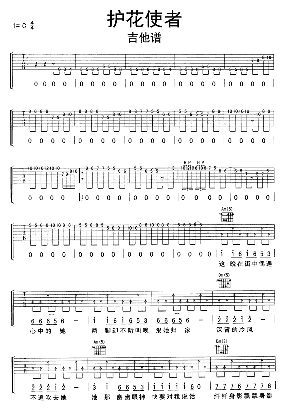 吉他《护花使者》吉他谱(指弹+和弦)