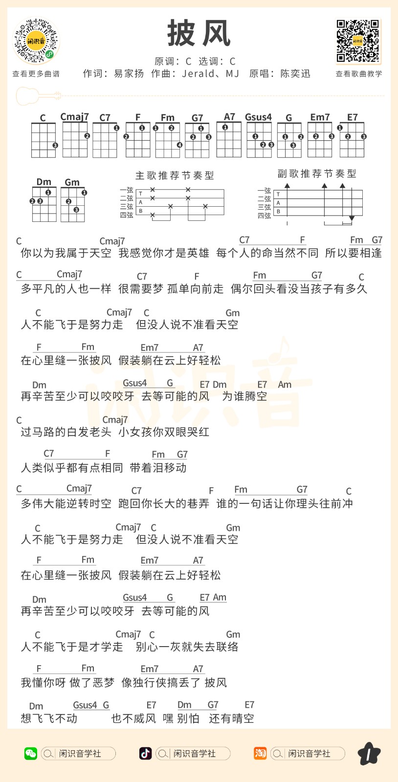 陈奕迅《披风》尤克里里曲谱-C调完整弹唱...