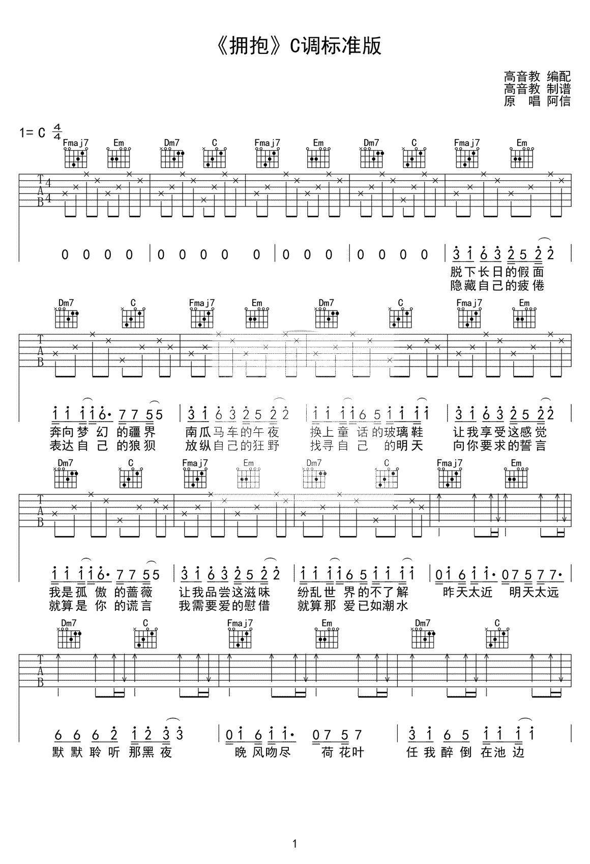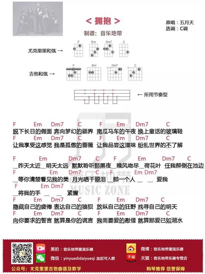 吉他五月天《拥抱》吉他谱_吉他弹唱谱_高音教编配