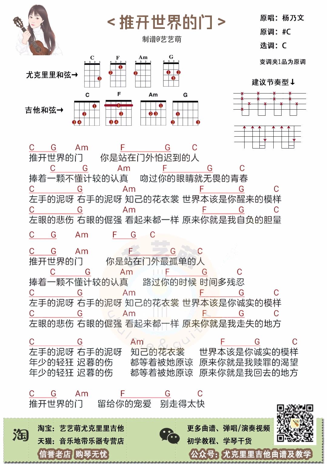 尤克里里杨乃文《推开世界的门》尤克里里谱