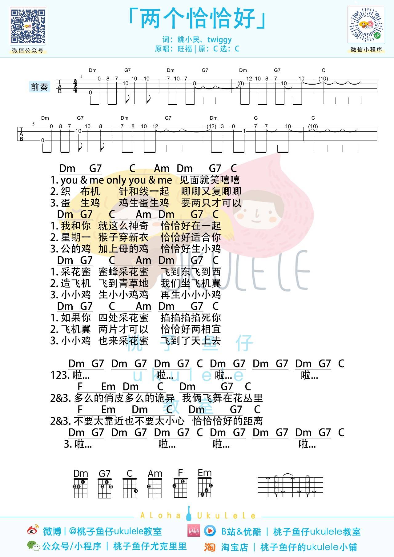 尤克里里旺福《两个恰恰好》尤克里里谱