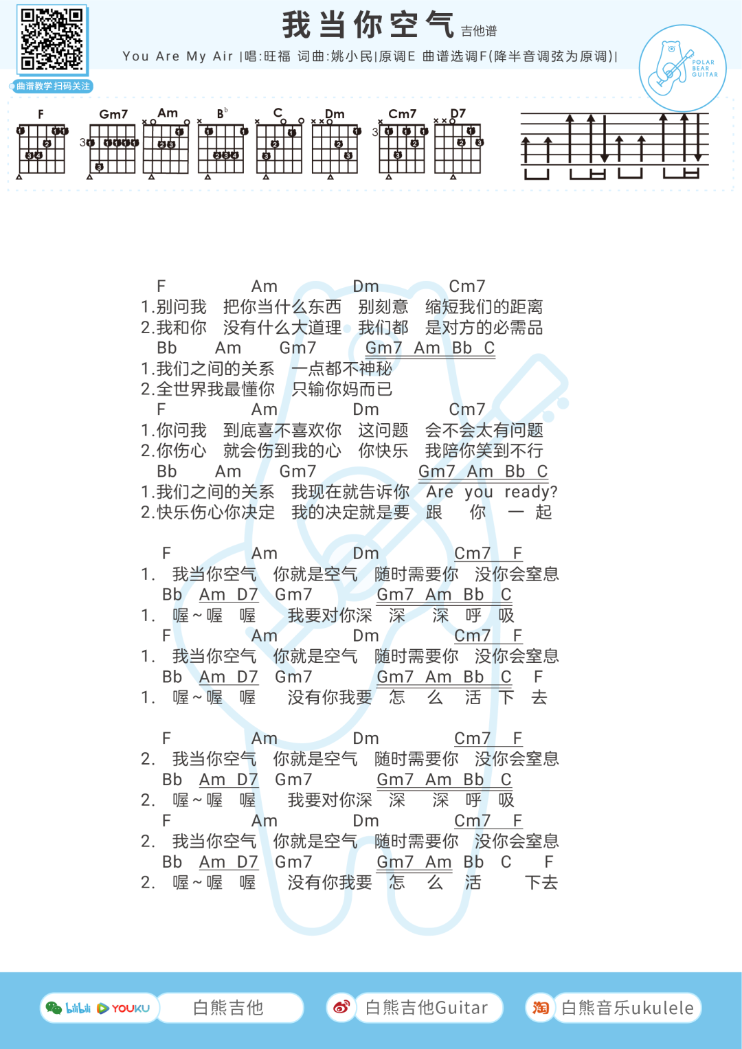 旺福《我当你空气》吉他谱-F调版...