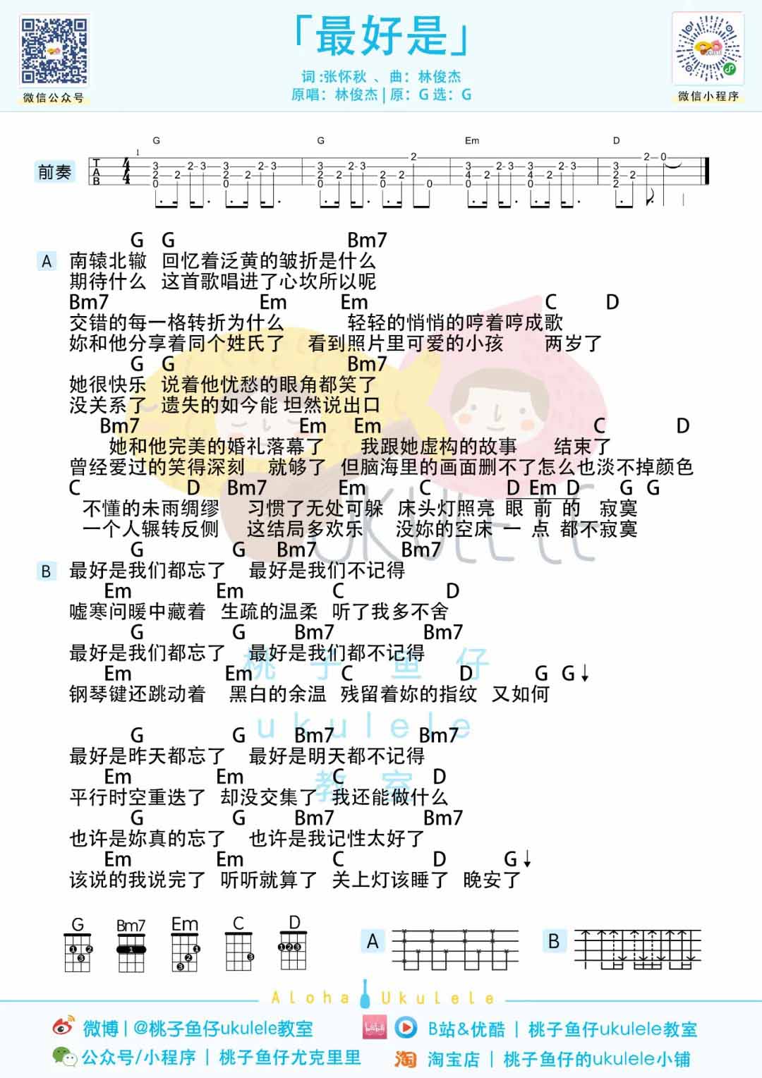 林俊杰《最好是》尤克里里谱-G调弹唱谱...