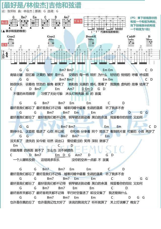 吉他林俊杰《最好是》吉他谱_吉他弹唱谱_大树音乐屋编配