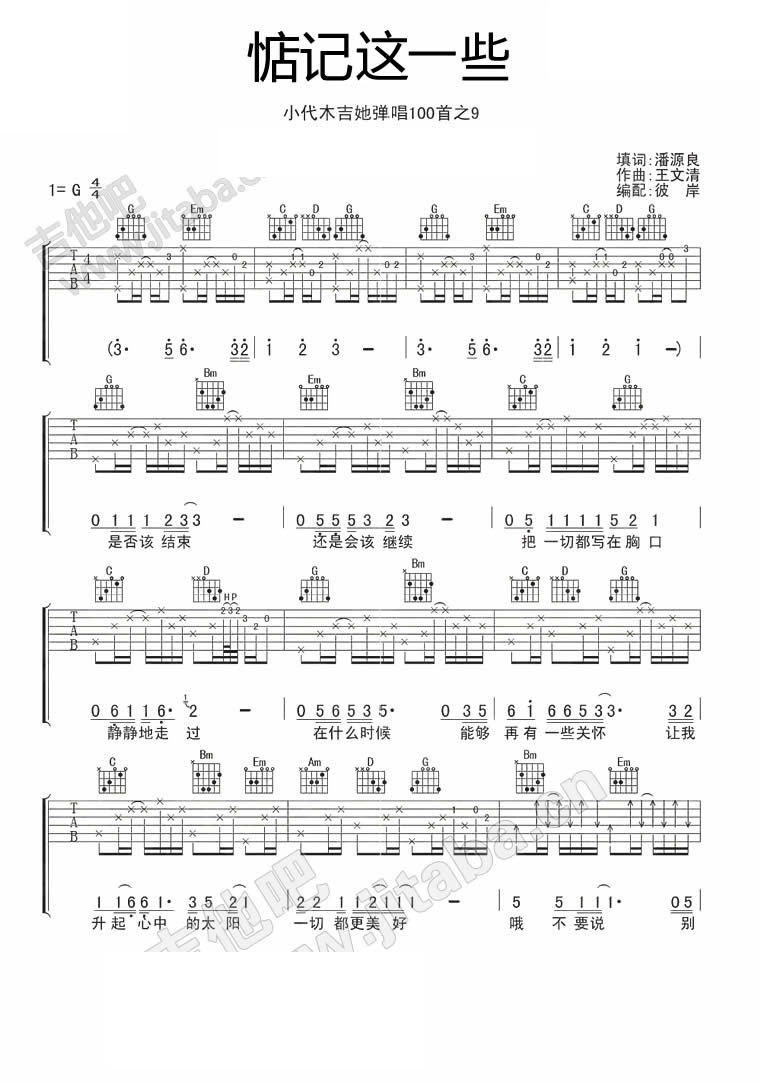 吉他木吉她小代《惦记这一些》吉他谱_吉他弹唱谱_彼岸吉他编配
