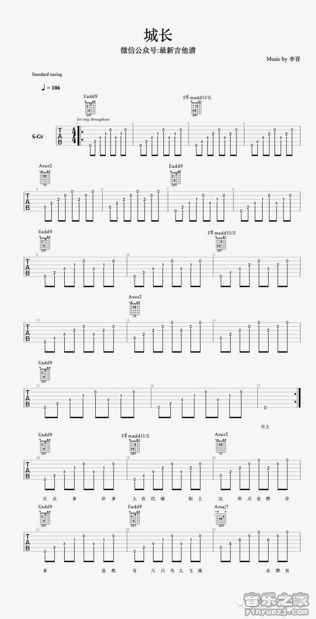吉他李晋《城长》吉他谱_吉他弹唱谱_最新吉他谱-李晋编配