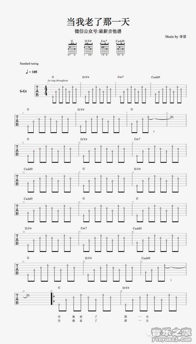 吉他李晋《当我老了那一天》吉他谱_吉他弹唱谱_最新吉他谱编配