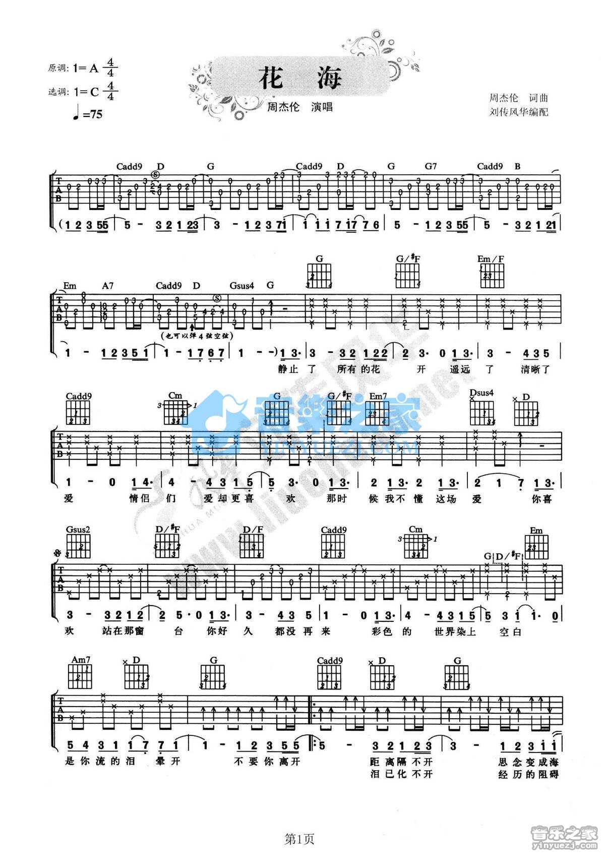 李晋《窗外花开》吉他谱,YYZJ编配出品,共有2张高清图谱,免翻页排版设计。...