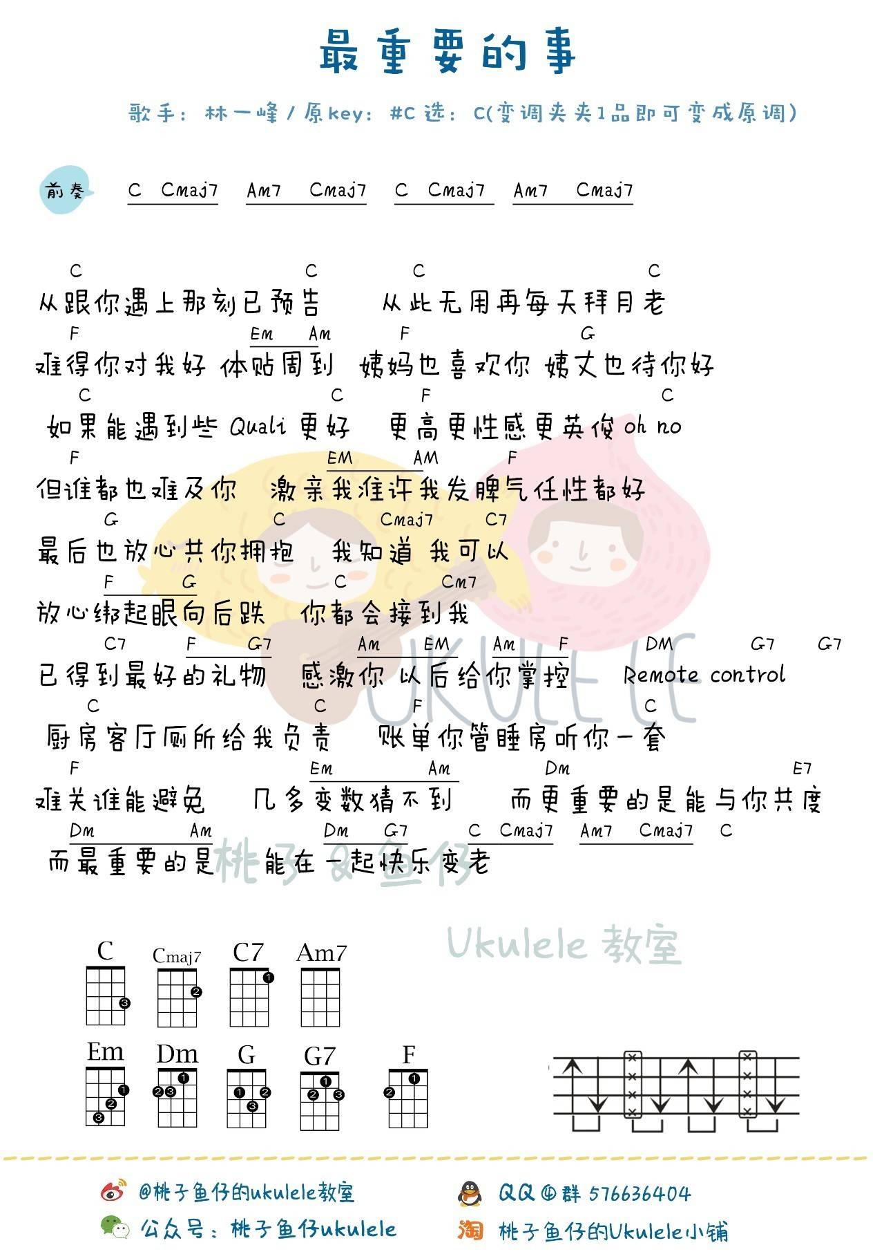 林一峰《最重要的事》尤克里里谱C调完整弹唱...