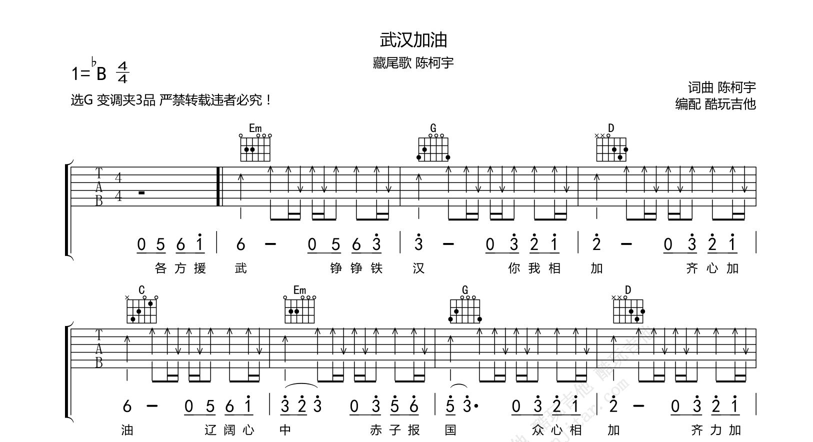 关于武汉加油(藏尾歌)的曲谱