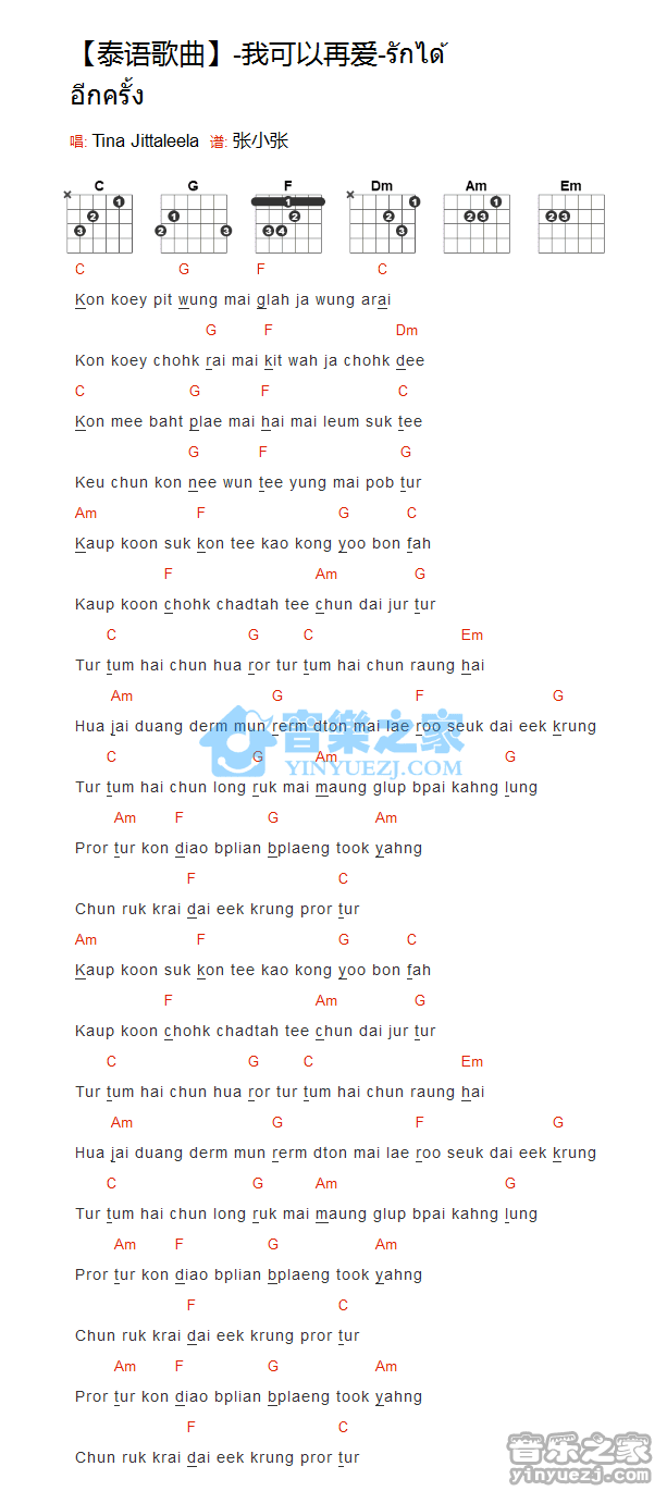 吉他泰语歌曲《我可以再爱》吉他谱_吉他弹唱谱
