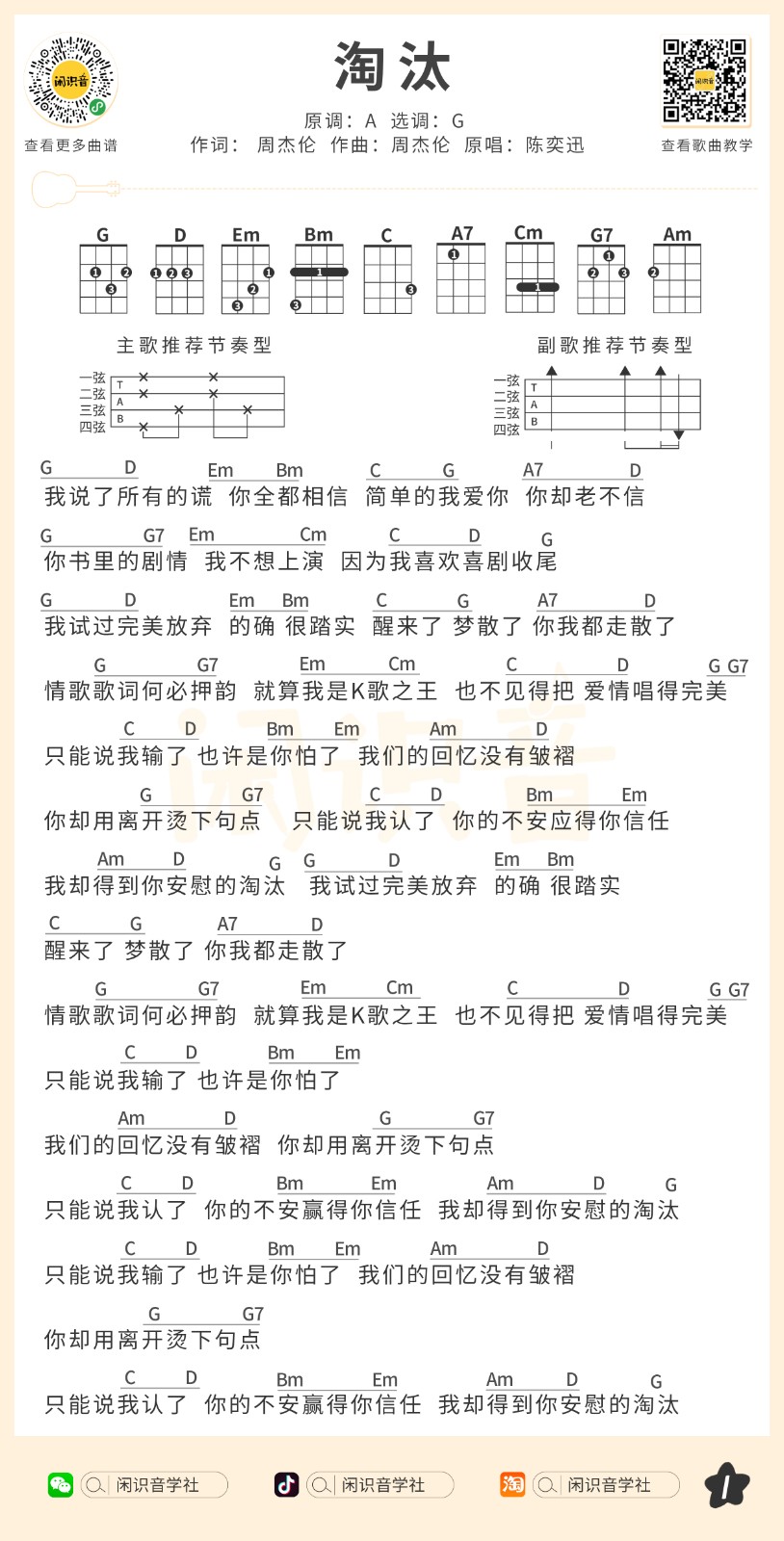 尤克里里陈奕迅《淘汰》尤克里里曲谱-G调弹唱谱